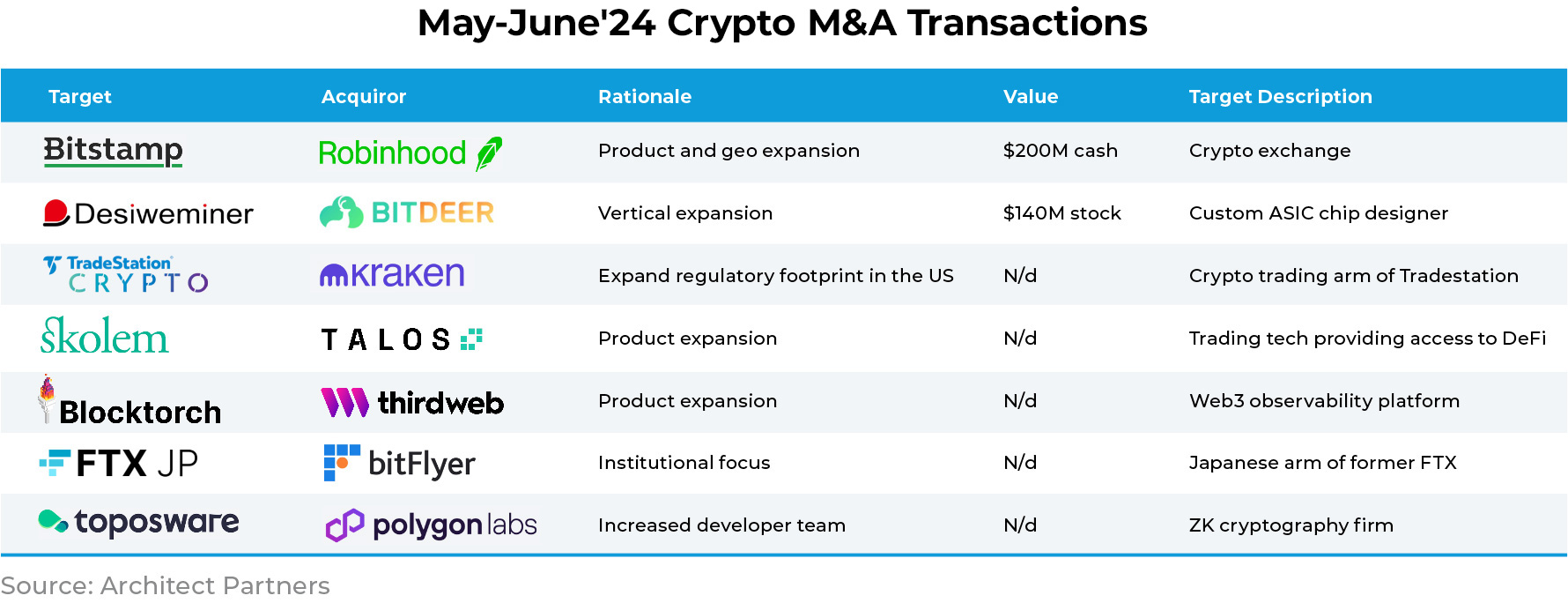 - There have been a number of smaller M&A transactions in the crypto space in Q2 that are finally starting to generate exits - Talos, Kraken, bitFlyer, and others
