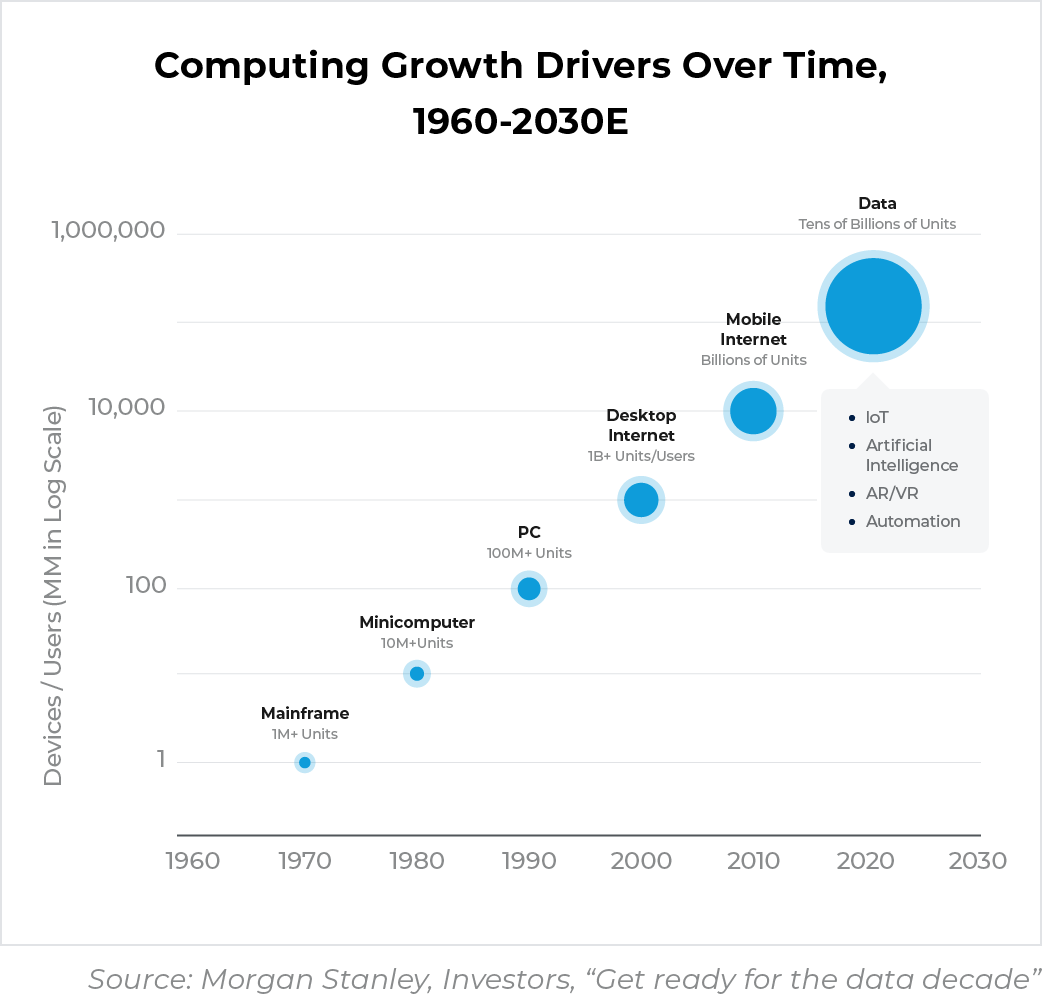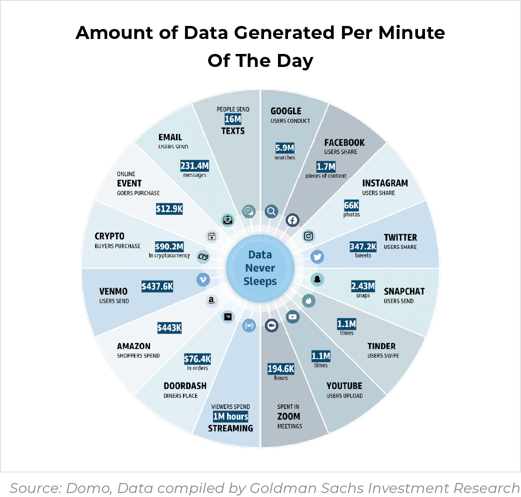 Interaction with AI software and information becomes as easy as typing or speaking, which leads to broader adoption and more data produced. Thus, the pace of data creation and progress increases exponentially.