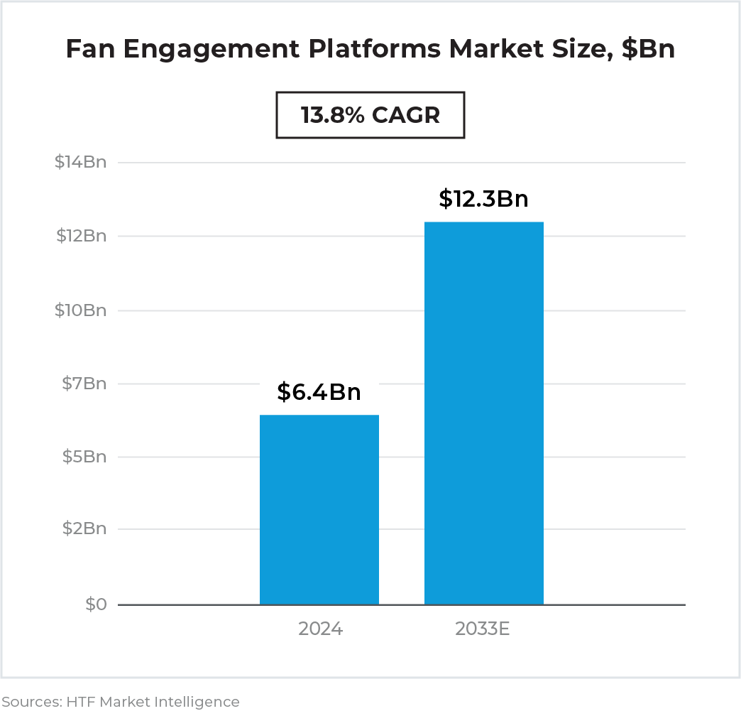 Sports TAM exceeds $300Bn globally (including media, sponsorships, ticketing, and merchandising), with North American leagues driving much of the growth amid mega-events like the 2026 World Cup.